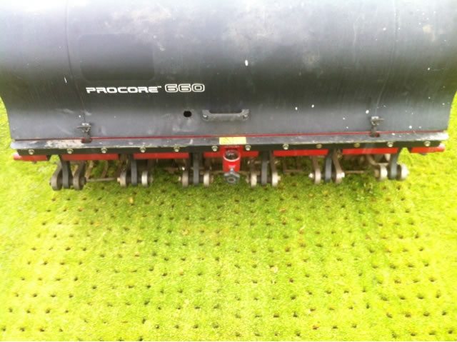 - Libera la compactación del suelo que se origina como consecuencia del uso intensivo por parte de los golfistas y el peso de la maquinaria que se emplea en las labores de mantenimiento; La compactación constituye el peor enemigo de los gramales deportivos, ya que afecta negativamente el intercambio gaseoso a nivel de las raíces.