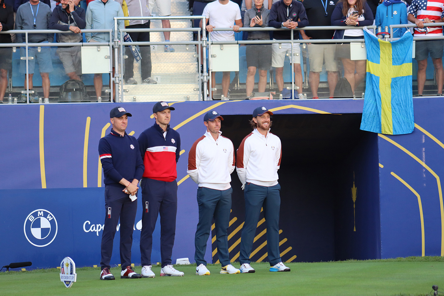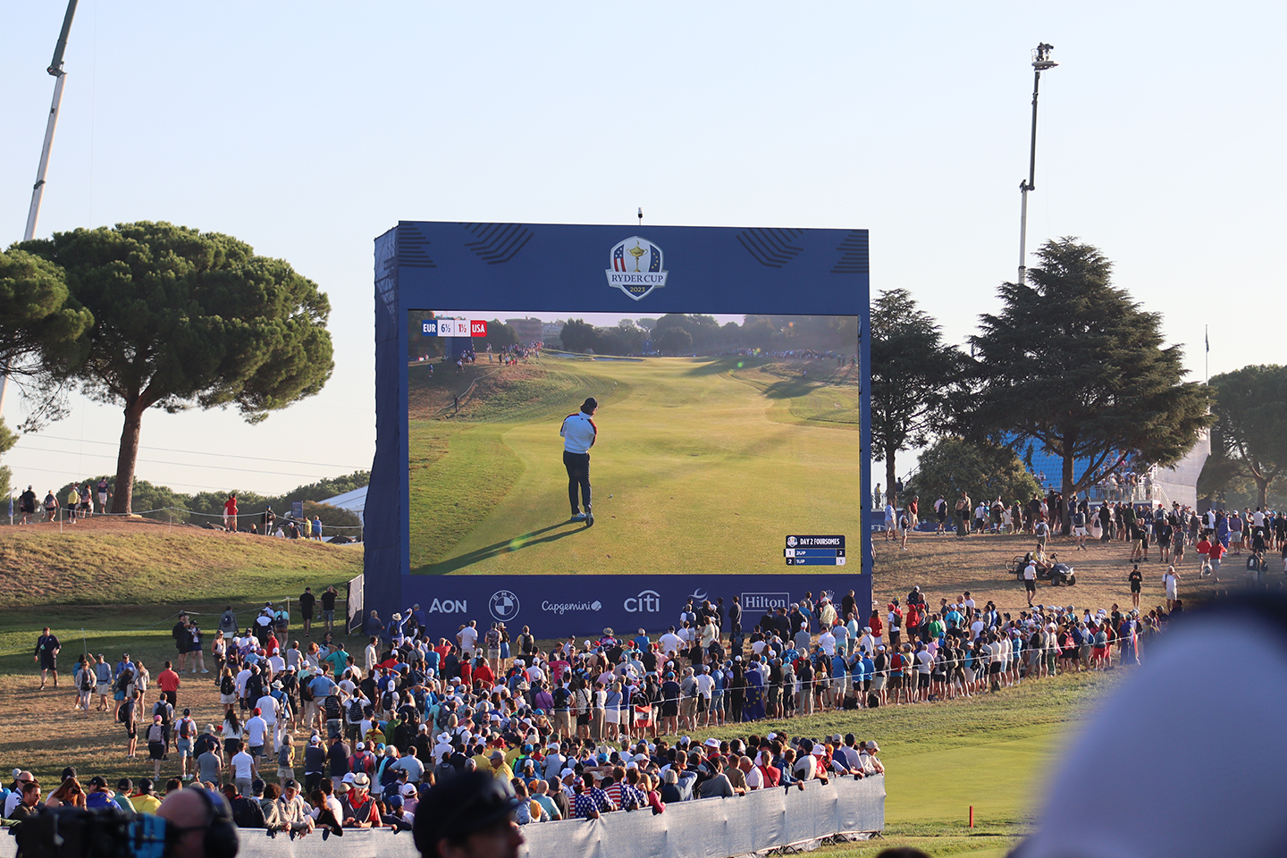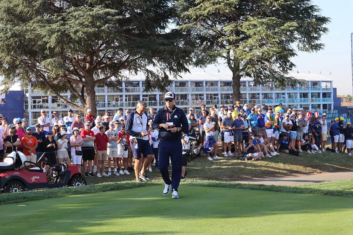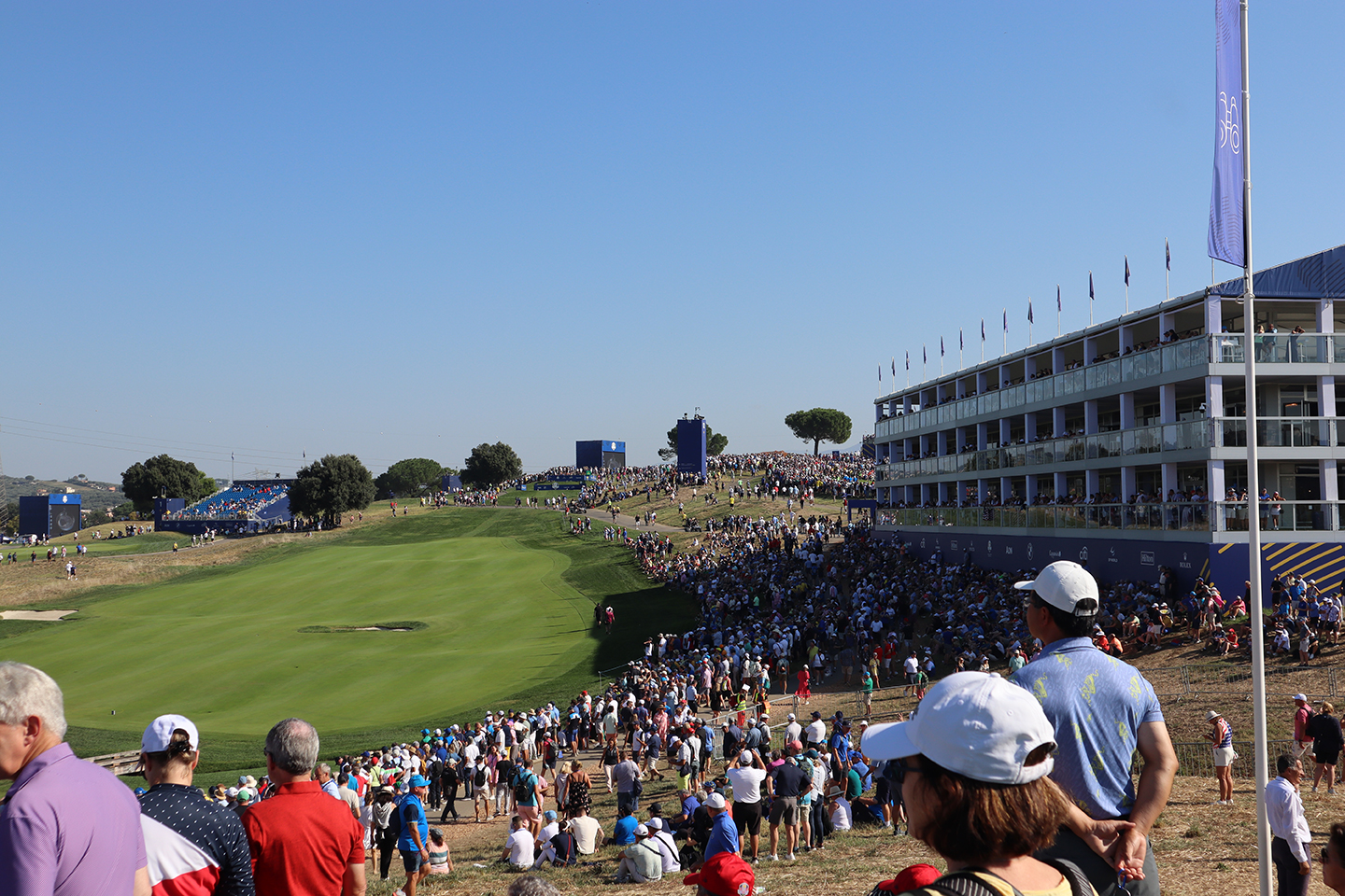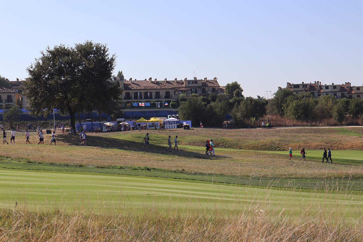 Bello día, este 29 de septiembre del 2023, con un clima y sol estupendo, comenzó la fiesta del Golf en el Campo Marco Simone Golf & Country Club, situado en el Municipio de Guidonia Montecelio, en la Ciudad Metropolitana de Roma, Italia, se encuentra a 17 km del centro de la capital y cuenta con dos campos de golf: un campo reglamentario de 18 hoyos y un campo de 9 hoyos. Después de mucho esfuerzo, en el 2015 ganó la selección para albergar la 44ª edición de la Ryder Cup en este 2023, y aquí estamos para llevarles lo mejor de esta gran FIESTA DEL GOLF